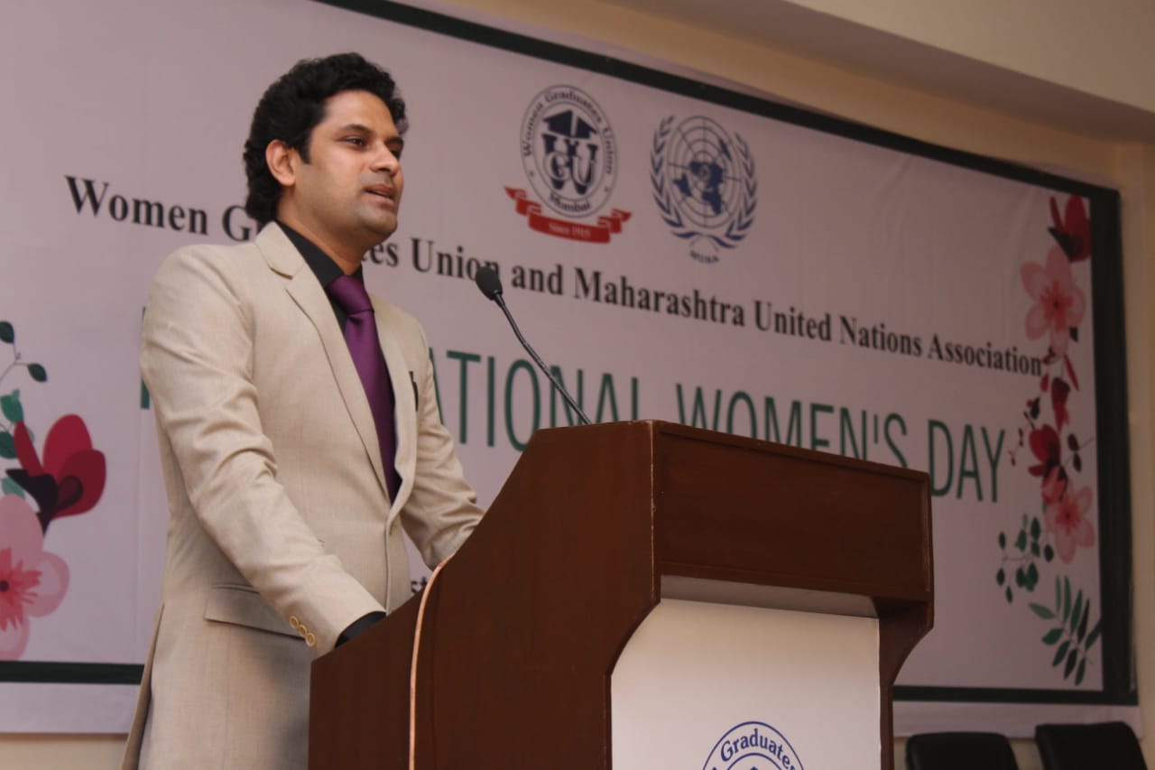 Ms. Megha Patil, Member Governing Council of MUNA read out the excerpts of message of UN Secretary General Mr. António Guterres, she also highlighted the role of women in the modern era with special focus on equal remuneration rights for working women and she explained that a strong women is one who has a voice but that's what is missing.
