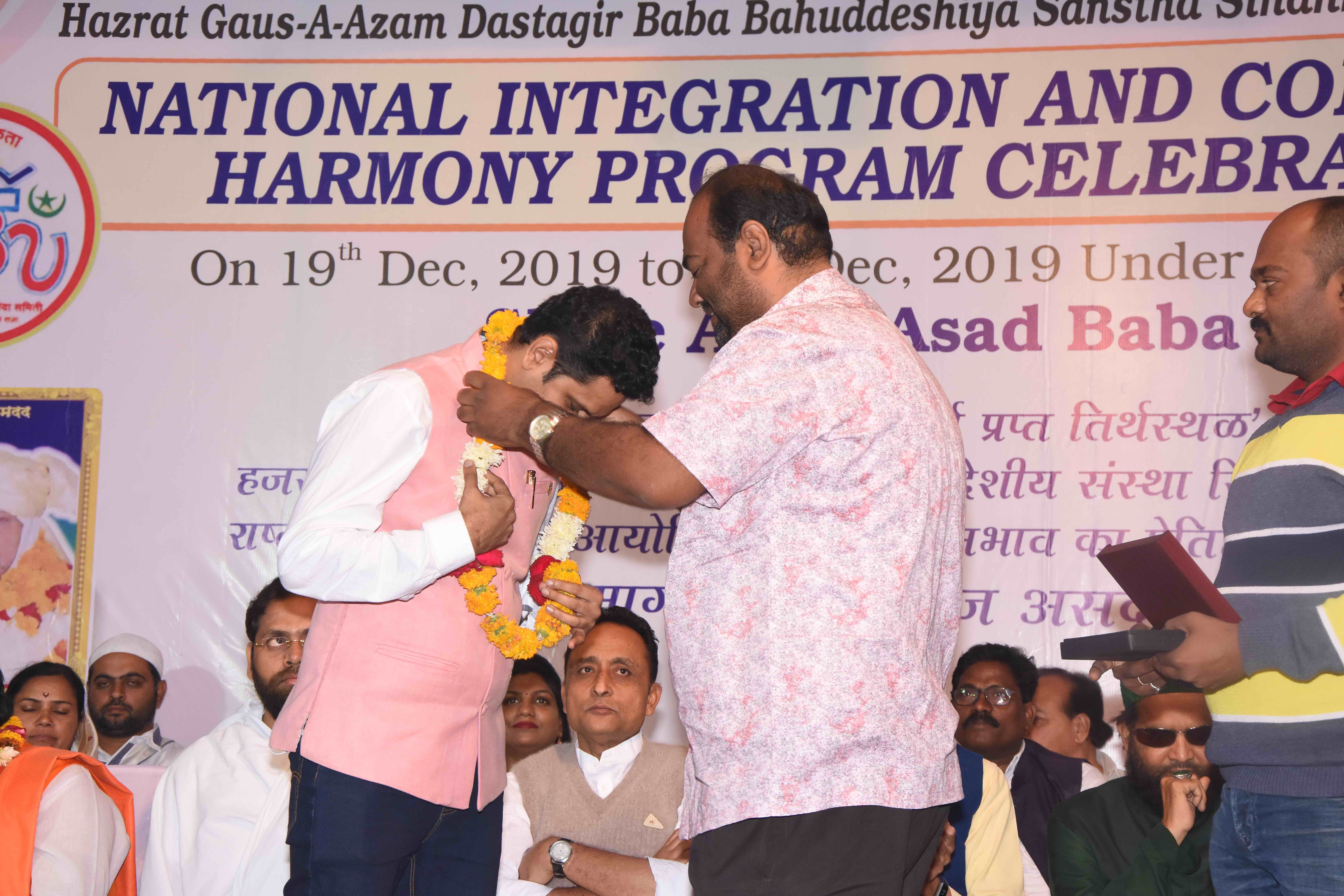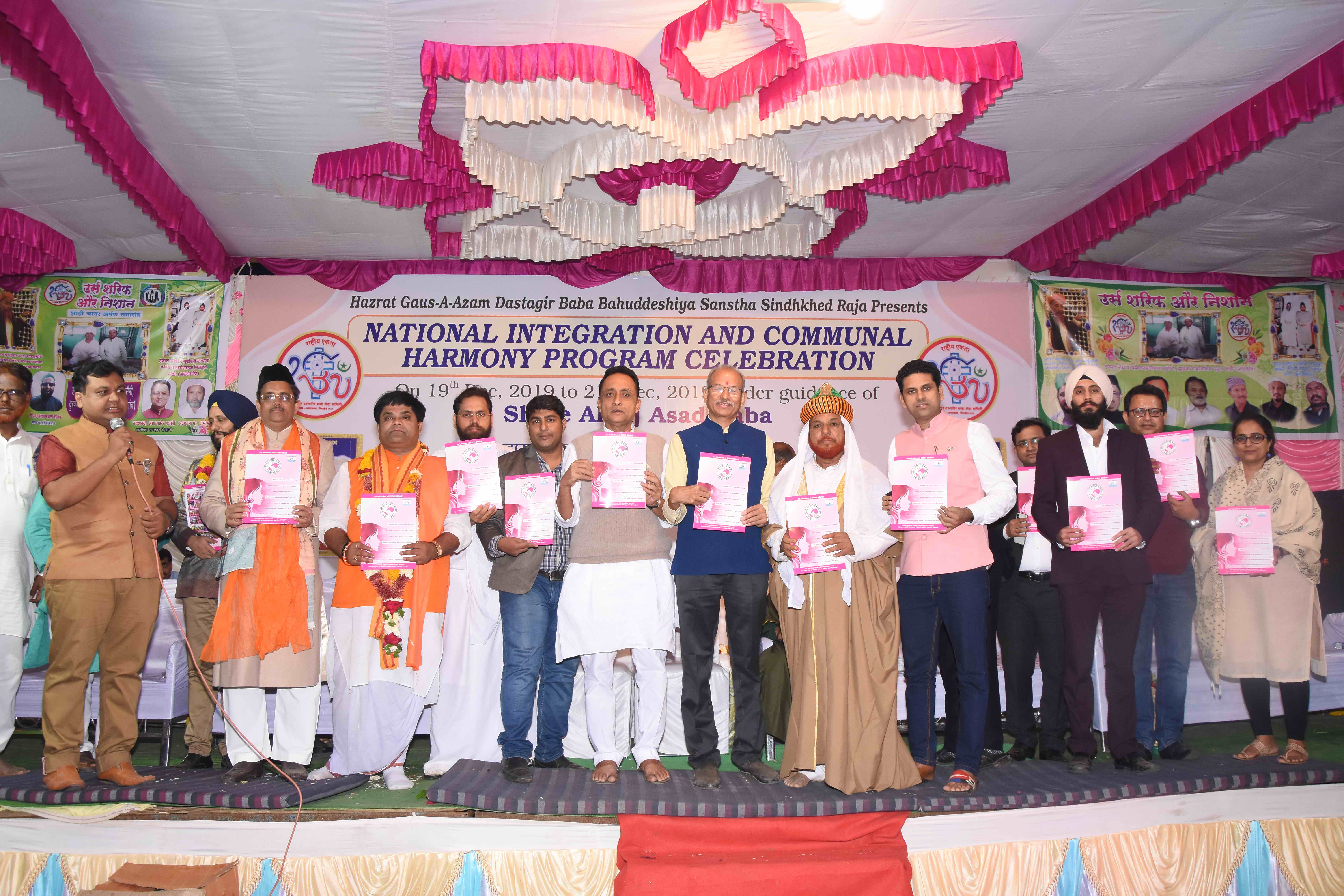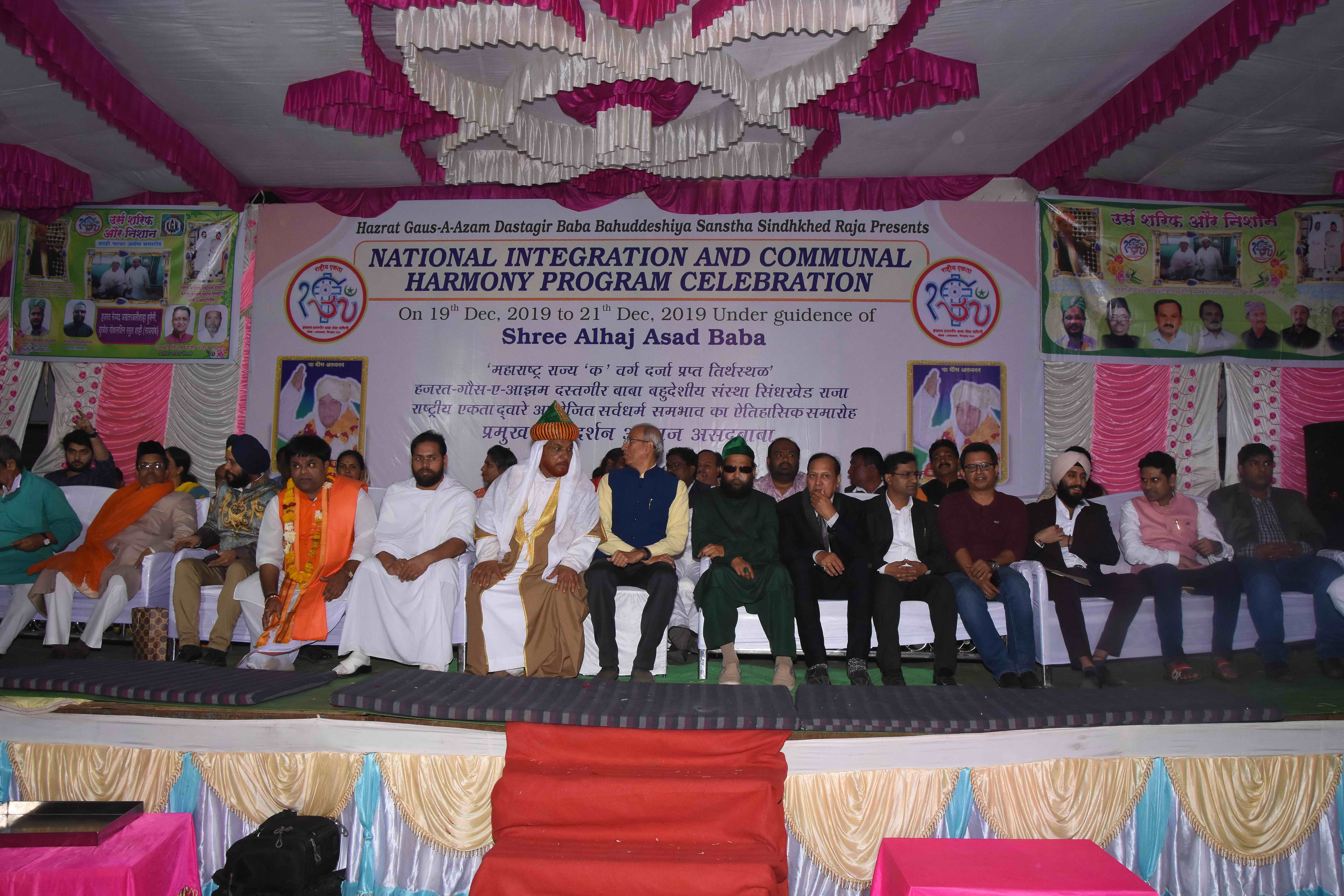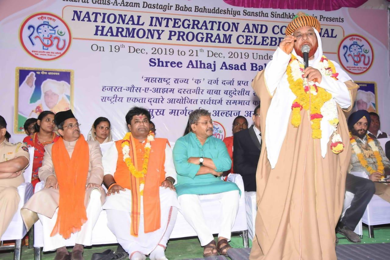 Sindkhed Raja: On 19th December, 2019, Sindkhed Raja, District Buldhana,( About 90 kilometers from Aurangabad) in Maharashtra, witnessed a historical ceremony of national integration, communal harmony, unity and equality of all religions which was organized by Hazrat Gauss-e-Azam Dastagir Baba Bahuddeshia Sanstha in association with Maharashtra United Nations Association and many other organisations, in the presence of many dignitaries and religious leaders under the guidance of Alhaj Asad baba.