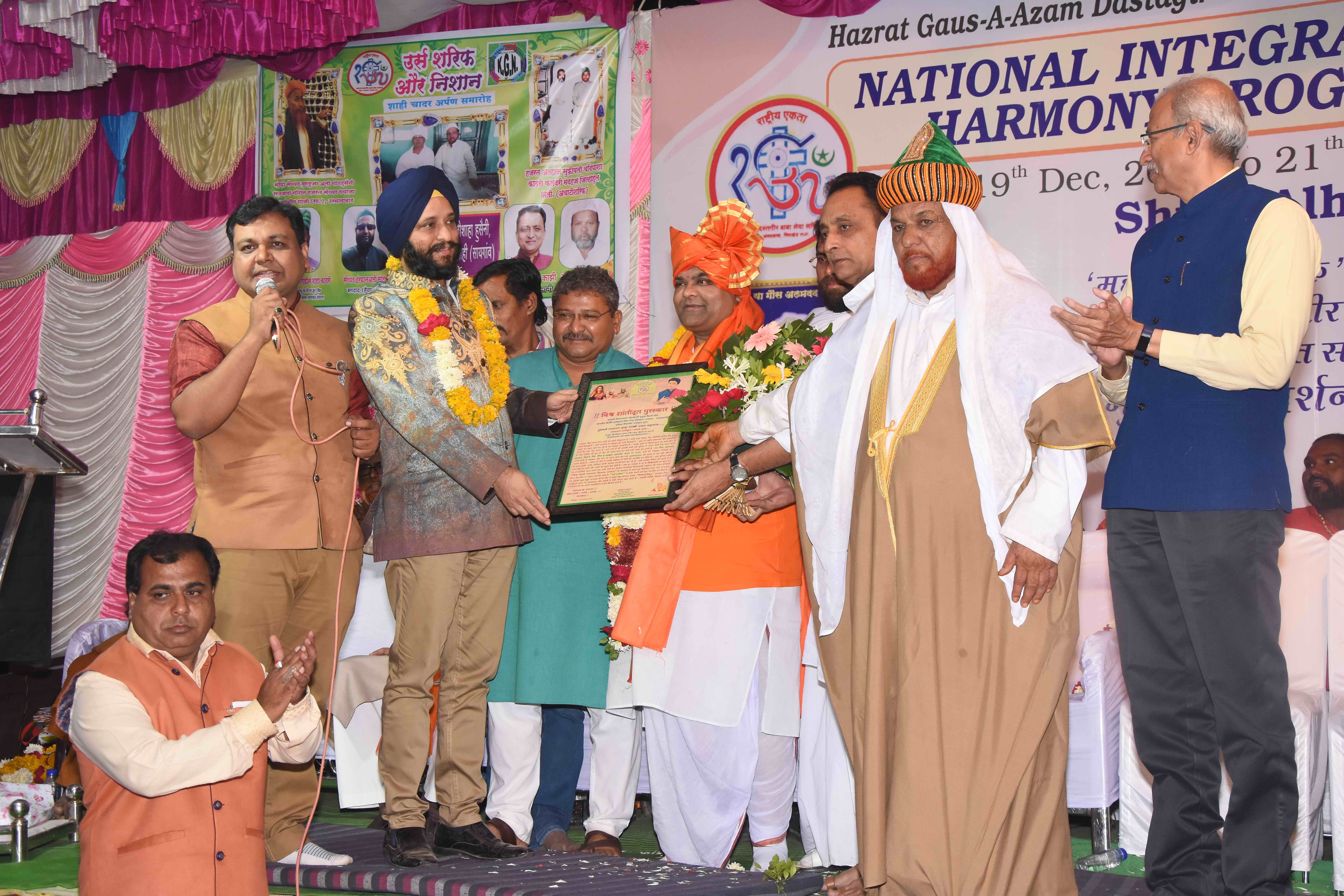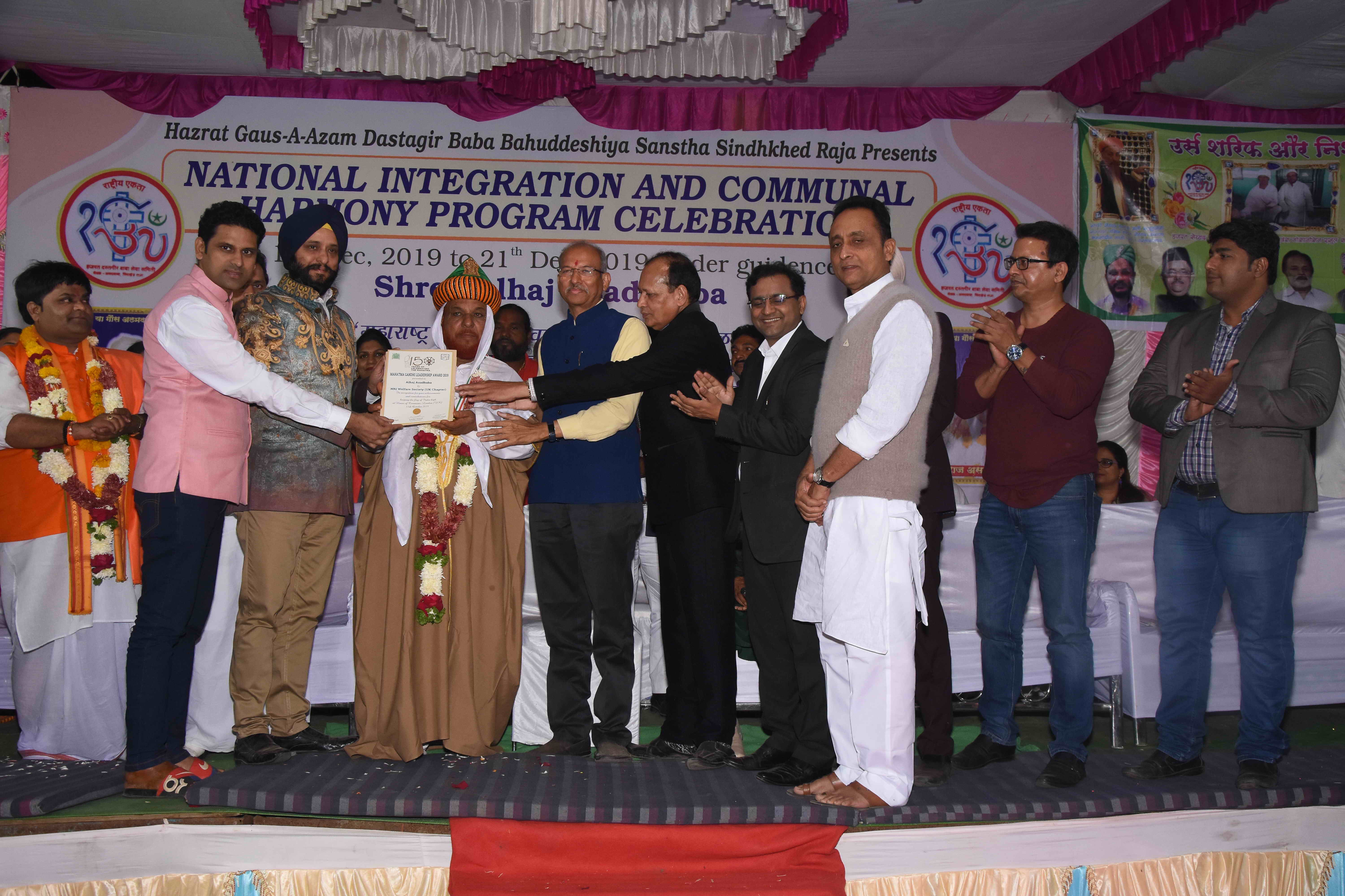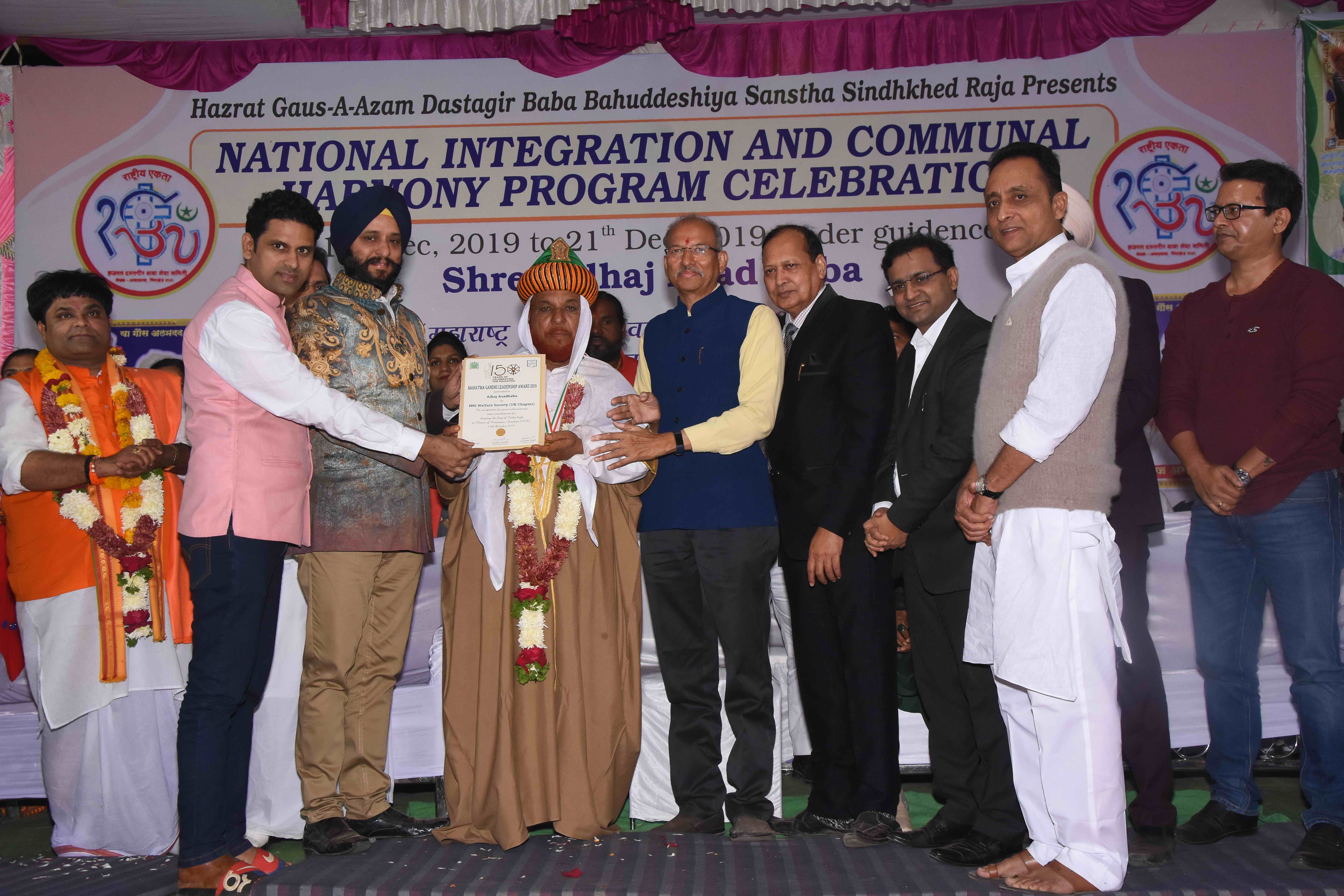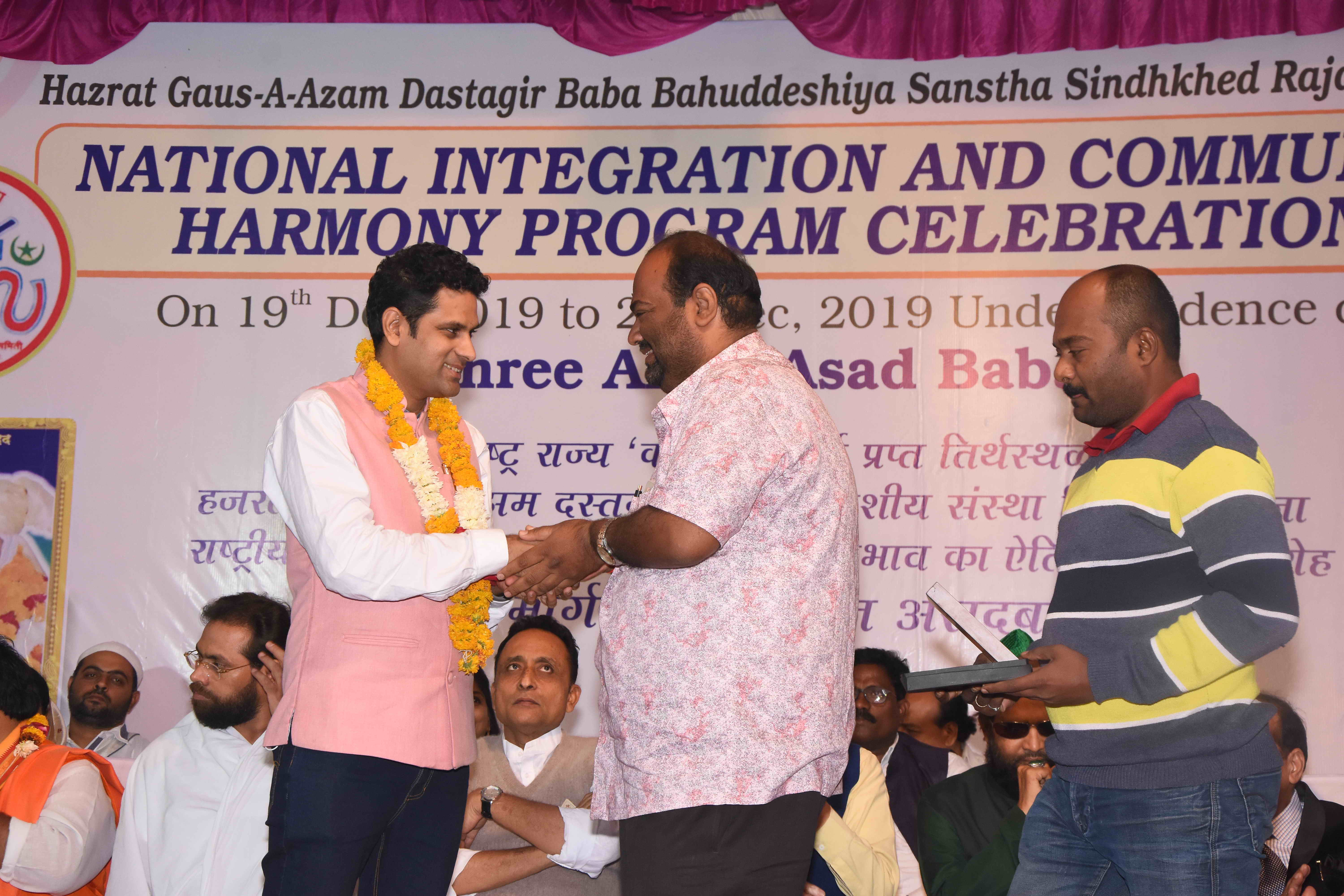 Sindkhed Raja: On 19th December, 2019, Sindkhed Raja, District Buldhana,( About 90 kilometers from Aurangabad) in Maharashtra, witnessed a historical ceremony of national integration, communal harmony, unity and equality of all religions which was organized by Hazrat Gauss-e-Azam Dastagir Baba Bahuddeshia Sanstha in association with Maharashtra United Nations Association and many other organisations, in the presence of many dignitaries and religious leaders under the guidance of Alhaj Asad baba.
