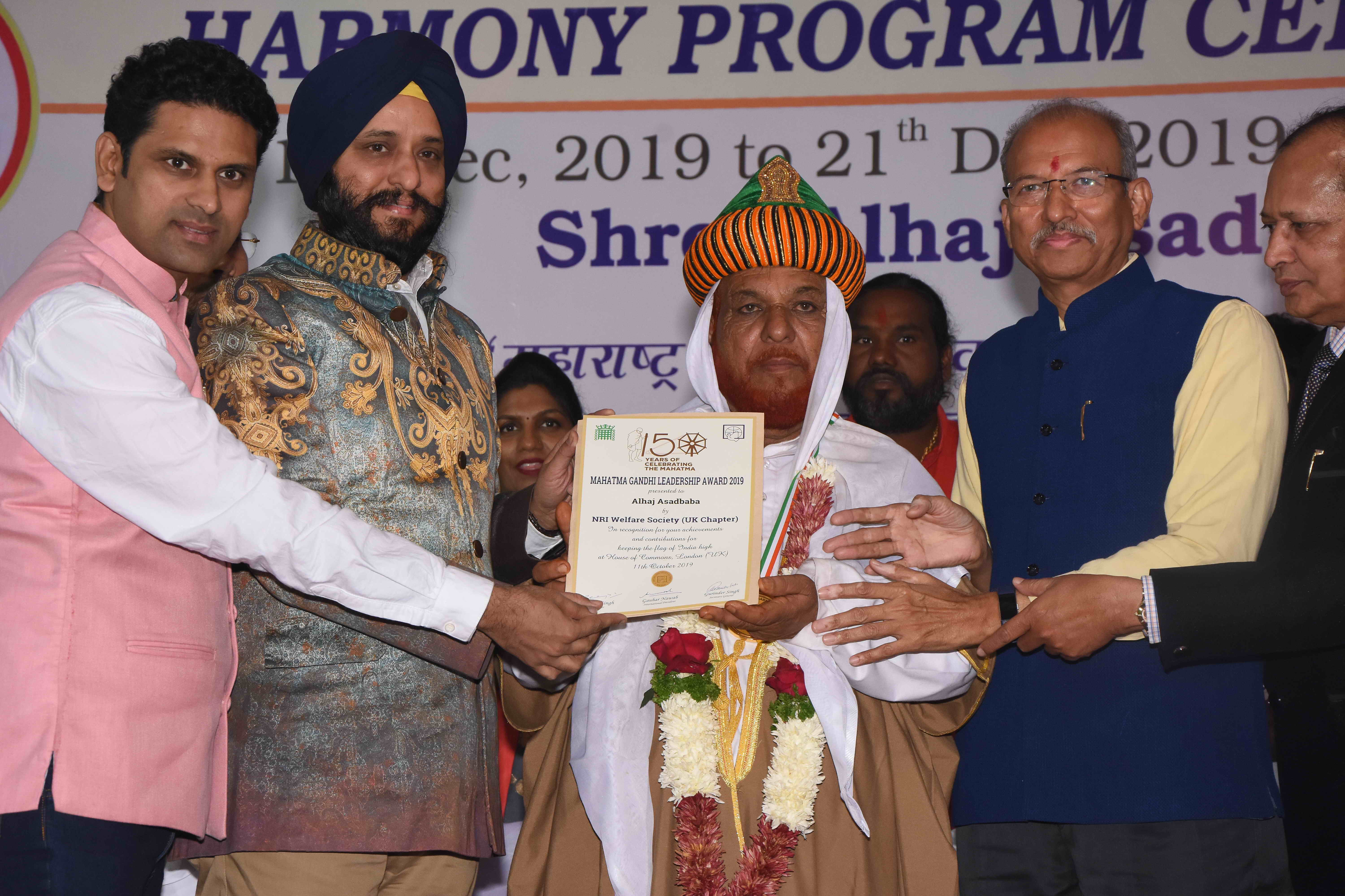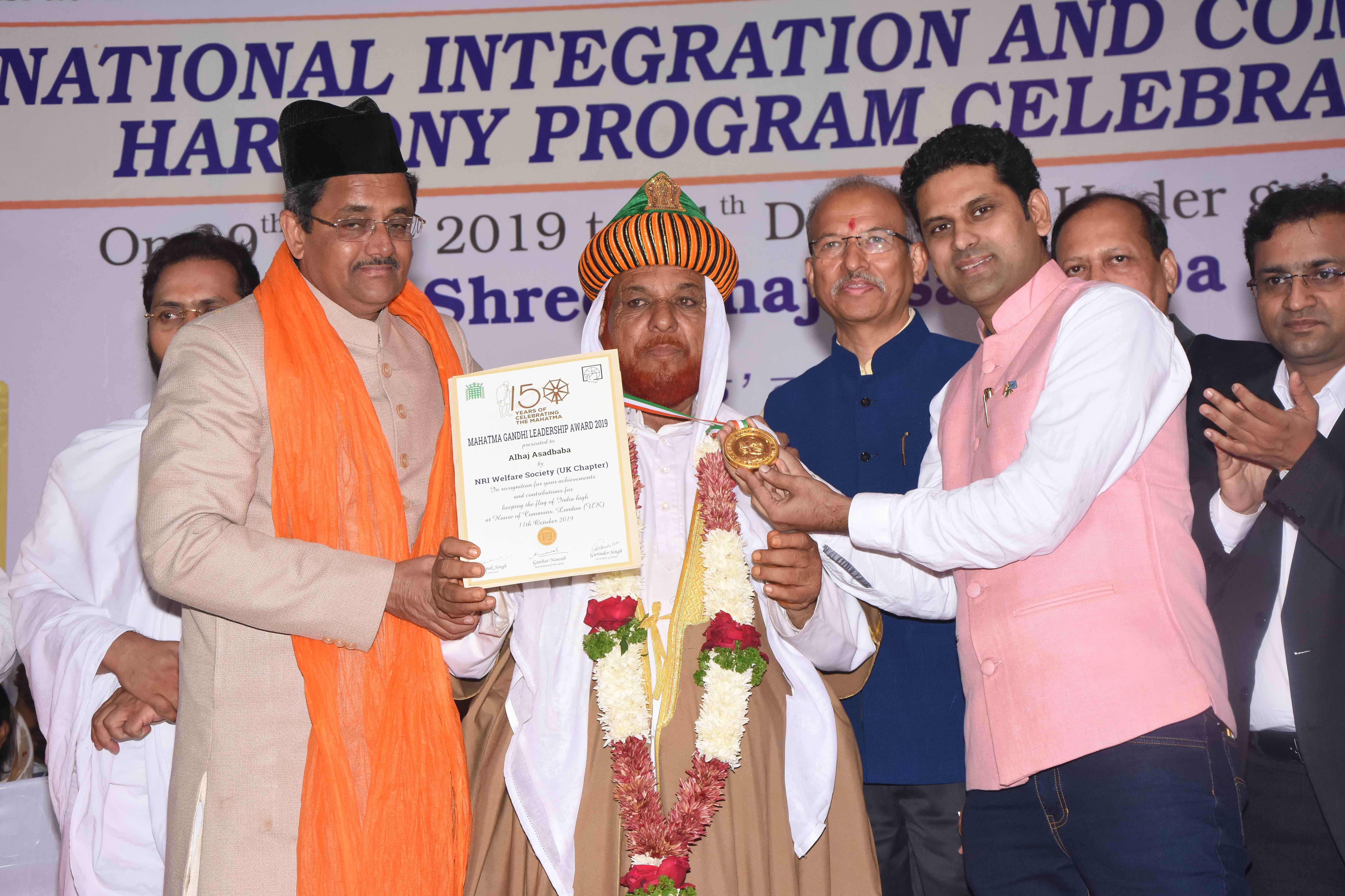 On this occasion Mahatma Gandhi leadership award was bestowed upon Asad Baba by NRI Welfare Society, UK Chapter, in the house of common, British parliament London, for selfless services rendered by Asad Baba for the society. The Award was presented by Mr. Deepak Singh, who came all the way from London to honor Asad Baba at this occasion.