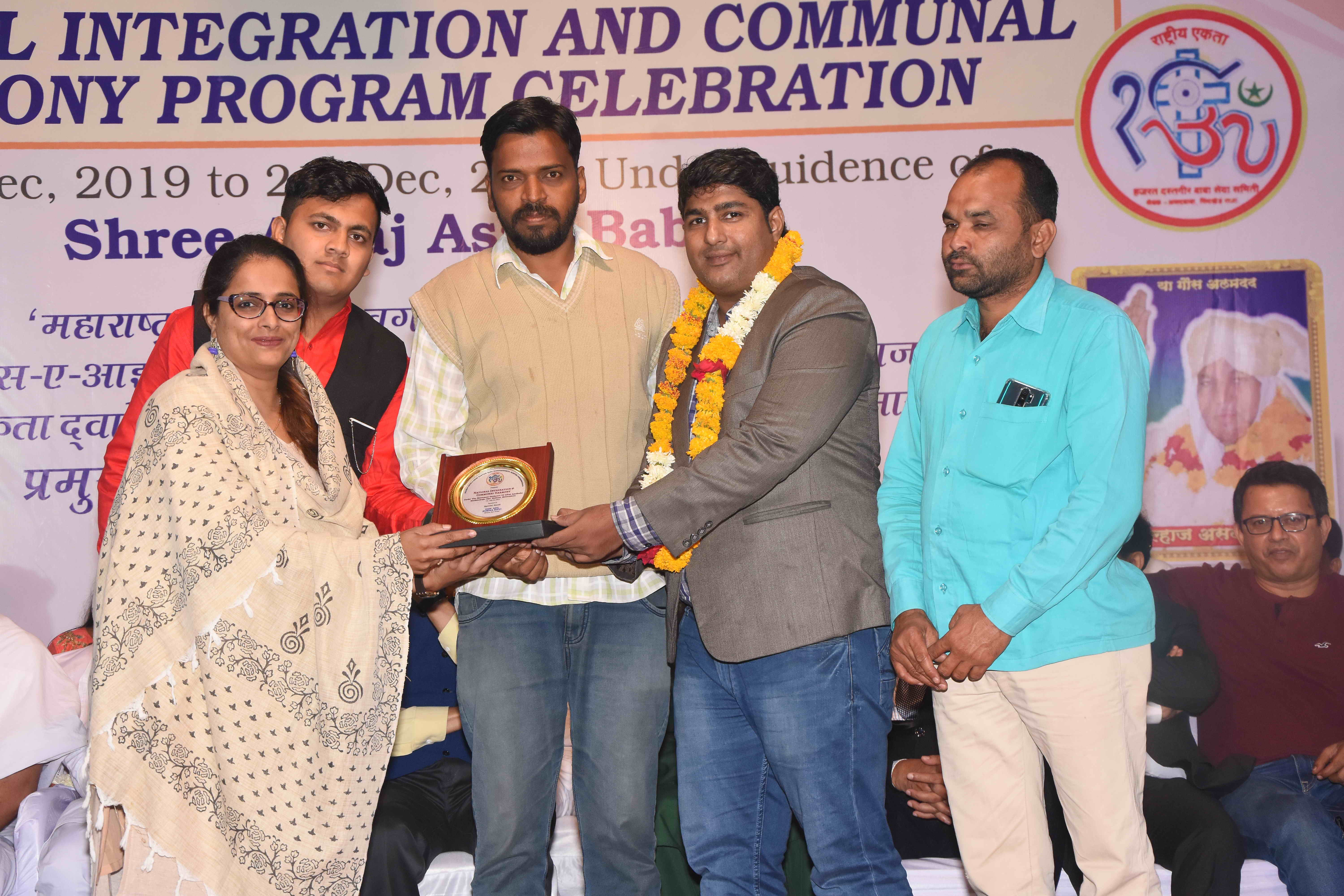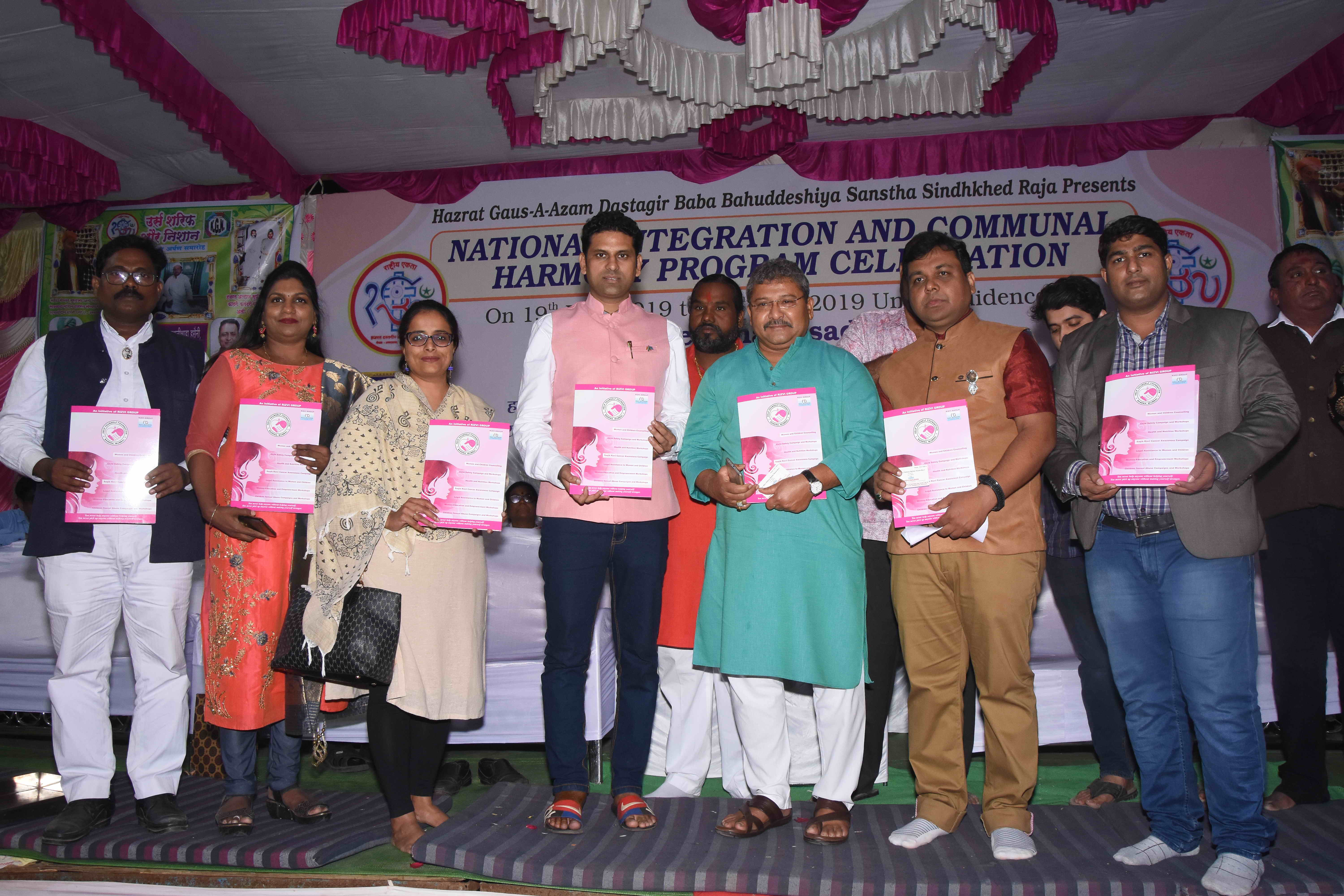 The programme was presided over by Padma Shri awardee Dr. Vikas Mahatma Member of Parliament (Rajya Sabha),The Chief Guest was Dr. Kakasaheb Tumane, (Chief Programme Director, South East Asia, Bill & Melinda Gates Foundation, USA) and the special guest was Mr. Deepak Singh (Cultural Ambassador of Seychelles), The other dignitaries and Guests of honors were Dr. Sukesh Zamwar (CMD Buldhana Urban), Adv. Ashraf Ahmed Shaikh (Hon. Secretary, Maharashtra United Nations Association - MUNA), Arun Nalawade, Renowned Marathi Actor, Rajesh Tendulkar (CEO Lykis Ltd.) Anas Dokadia (Builder Mumbai), Prof. Alkama Faqih and Prof. Radhika Vakahria representative of Help Yourself Foundation,(Attended on behalf of Adv. Rubina Akhtar Rizvi Director, Rizvi Education Society Mumbai), Sanjay Wayal (CEO, Ishved Biotech), Various Dharam Gurus, H.H. Gajanan Dada Shastri Maharaj, Shraddhaya Bhai Devendra Jain Muni, Mumbai, Bhante Bodhiyanand Thero, Gaurav Singh from British Parliament, Maulana Irfan Sahab from Baghdad and Abdul Naafe Chishty from Ajmer were present and spoke at the event. Welcome addressed was delivered by Adv. Nazer Quazi.